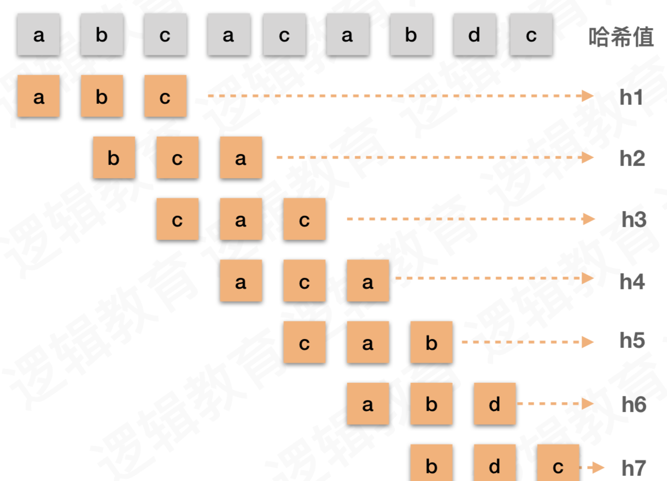 //④ 在对比过程,并不是一次性把所有的主串子串都求解好Hash值. 而是是借助s[i]来求解s[i+1] . 简单说就是一边比较哈希值,一边计算哈希值;