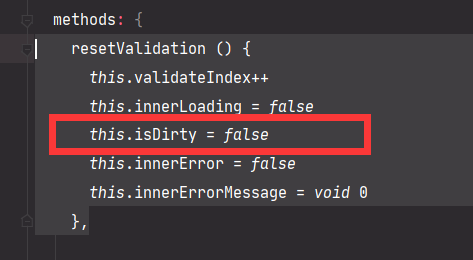 而每次重置校验的时候, 又都把 isDirty 赋了个 false, 所以就导致下次 q-input 发生改变时, 中途就弹出了, 执行不到校验的一步.