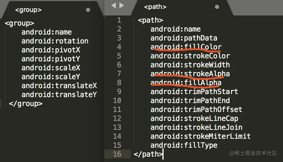 Q:在animated-vector中,group和path的区别。