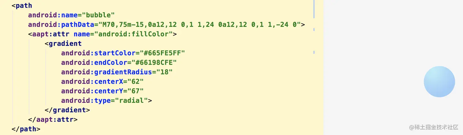 很明显渐变的话使用的gradient,vectorDrawable developer网站上有这样的例子。