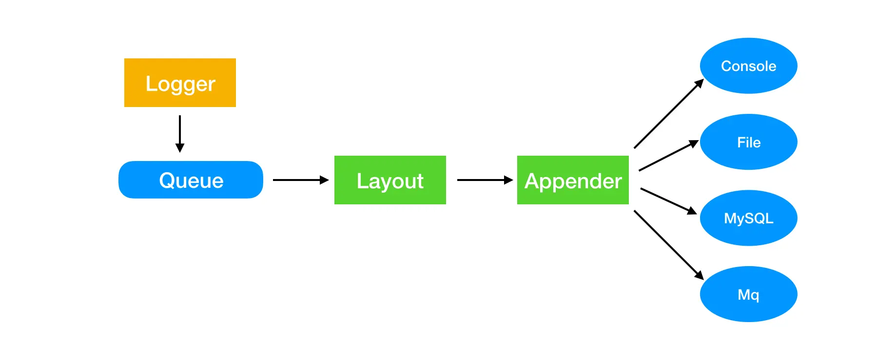 所以 Logger 在获取到日志信息之后,不会立马进行日志格式化和存储,会先把日志信息放到一个队列中,如下图所示: