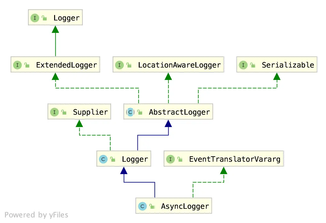 在 Log4j2 中,有一个 AsyncLogger,这个类完成了对 Disruptor 的包装,类结构如下: