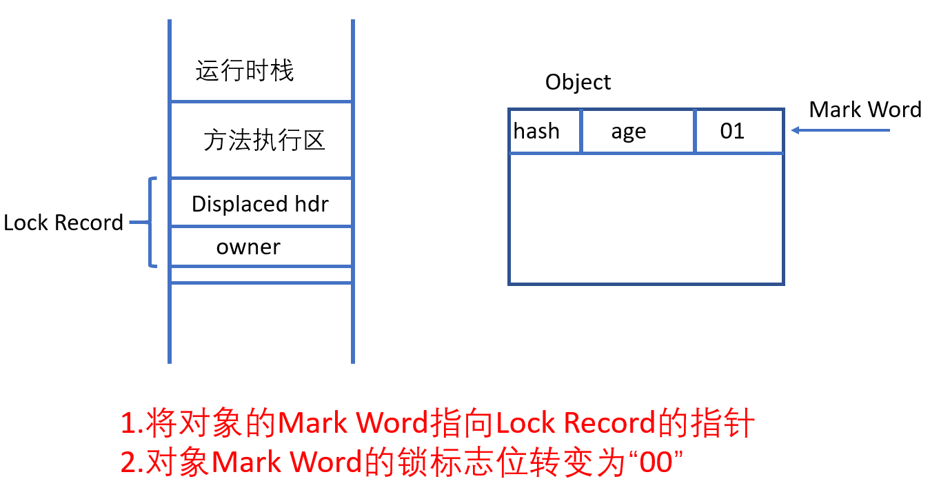 线程通过CAS操作尝试把对象的Mark Word更新为指向Lock Record的指针。