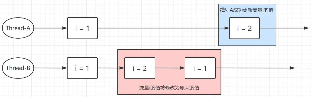 假设线程A第一次获取变量i的状态为i = 1,线程A需要更新值i = 2时,再次轮询i的状态i = 1,但是在第二次轮询之前线程B将i = 3,然后又改为i = 1,在线程A看来是没有更新过数据的。