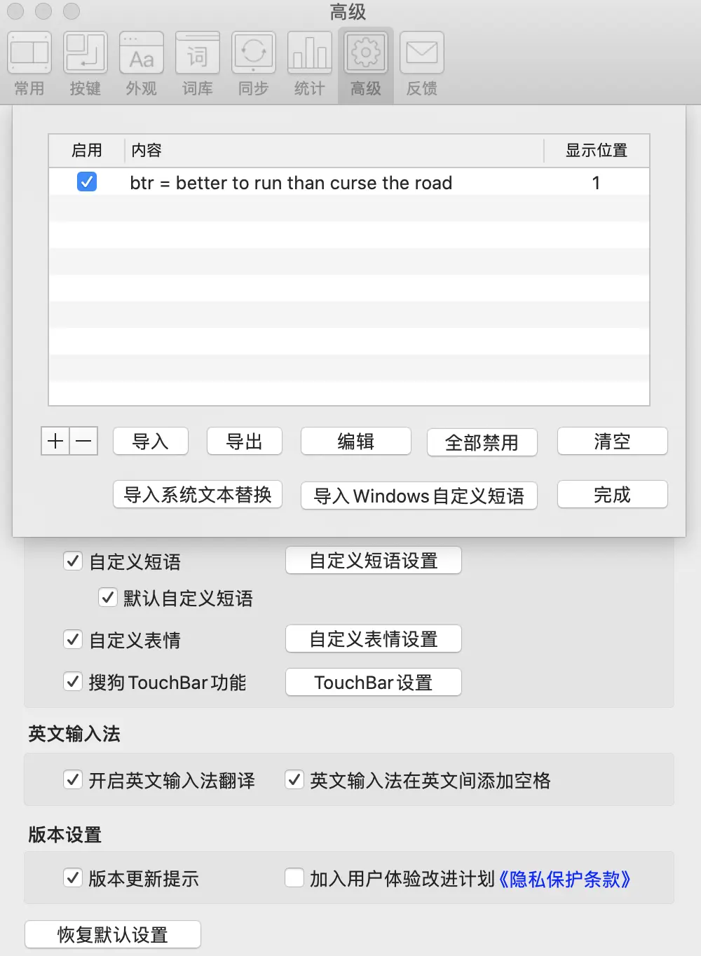 我们可以使用短语来快速输入我们常用的句子,或者不方便打出的符号: