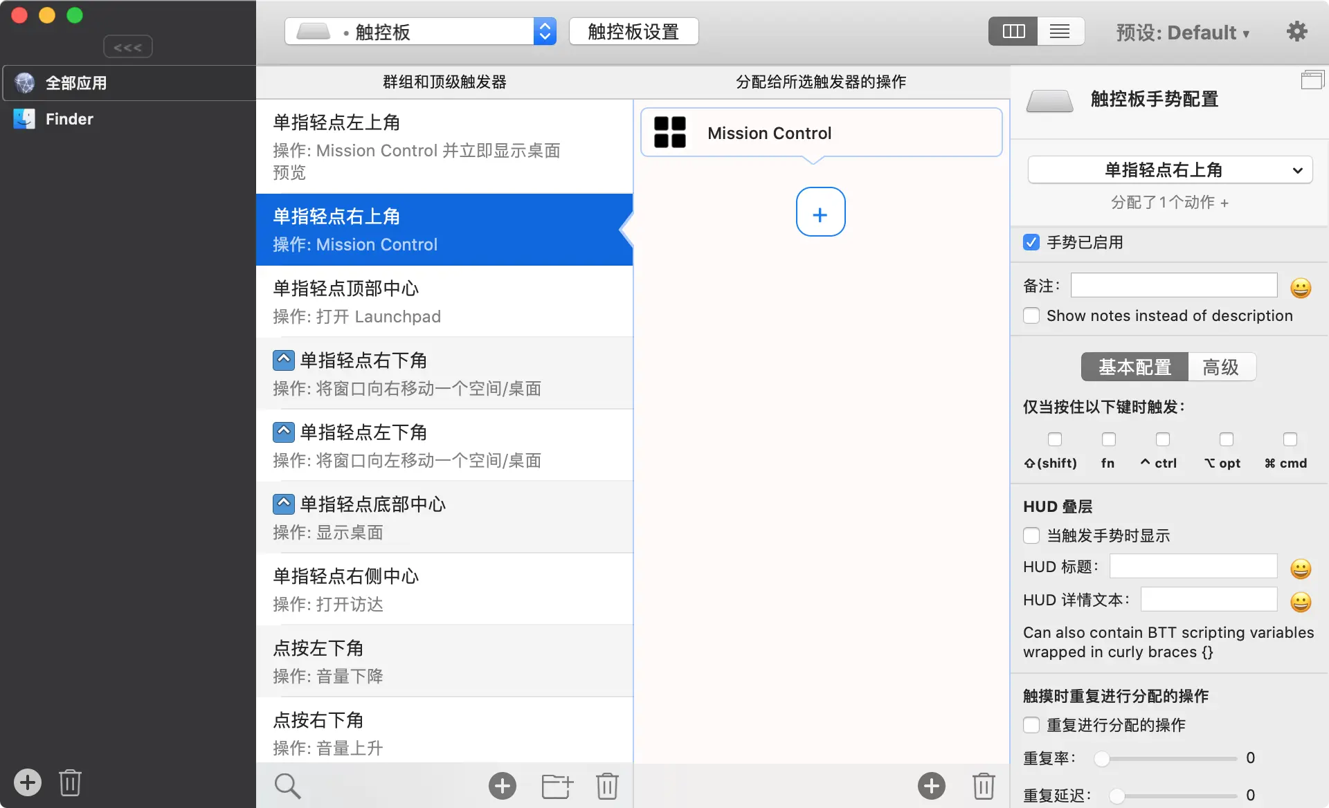 BetterTouchTool 是一个很棒的,功能丰富的应用程序,它允许你在 Mac 上定制各种快捷输入操作,目前它支持鼠标、触控板和键盘快捷键等: