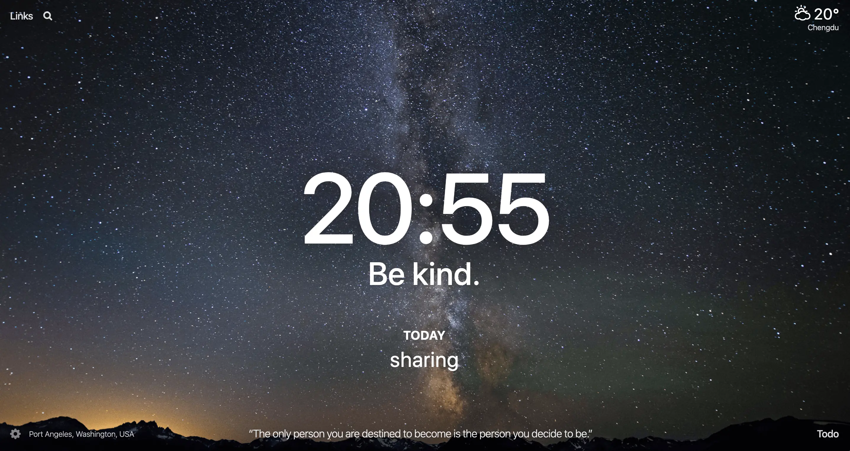 Momentum 使用具有待办事项,天气和真言等内容的个人仪表板替换你的新标签页,它包含一张漂亮的背景图,或许会给你片刻的宁静,你也能从名言警句中获得更多的动力,同时你还可以设定每天的焦点,跟踪你的待办事项: