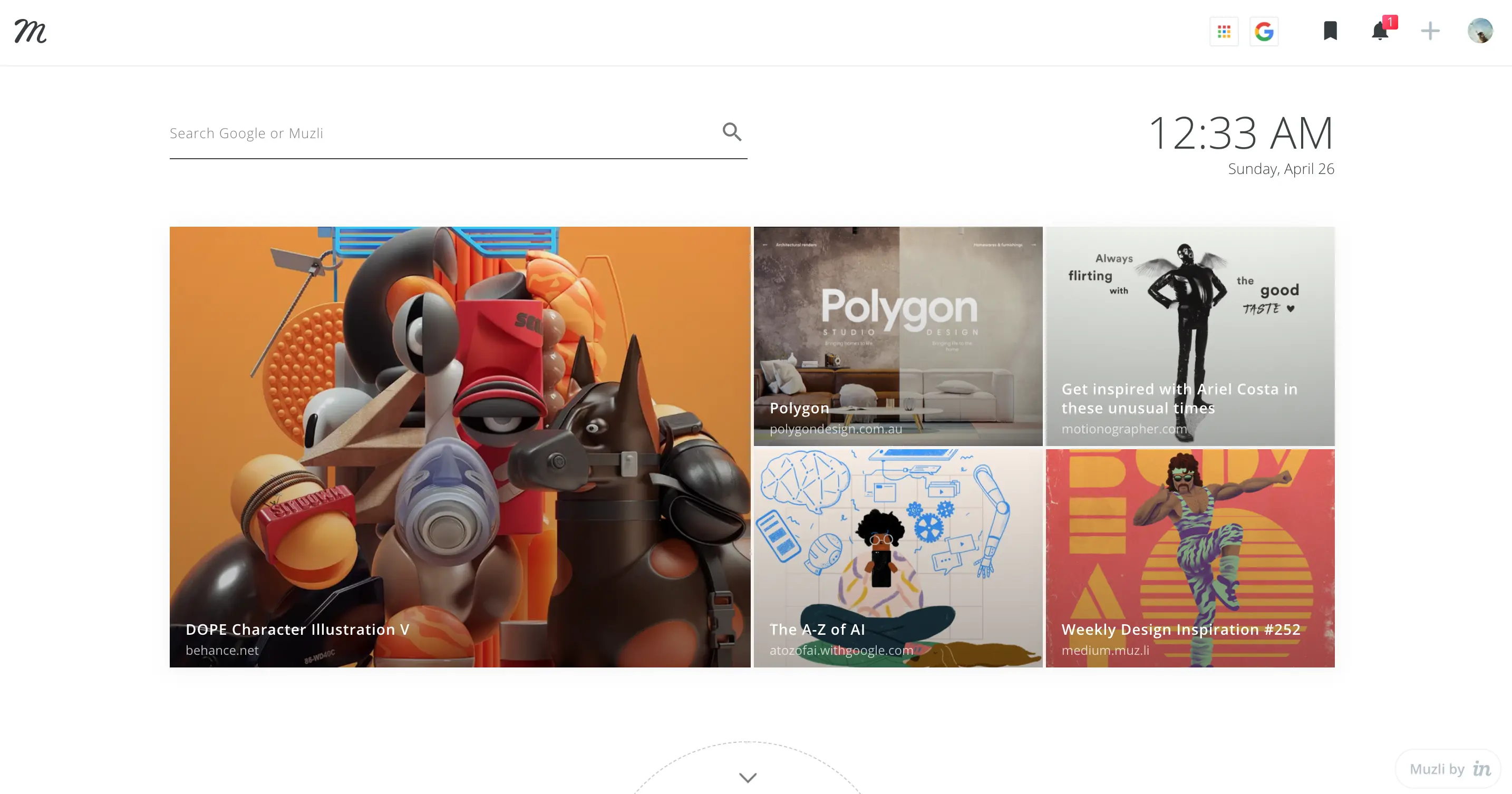 Muzli 使用相关的设计故事和灵感板替换你的新标签页,是设计师不可错过的灵感来源: