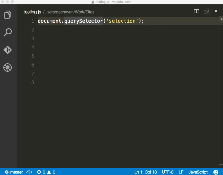 VS Code 里的 Dash 文档集成,可以使用 ctrl + h 根据当前语言搜索特定文档,使用 ctrl + alt + h 搜索所有文档: