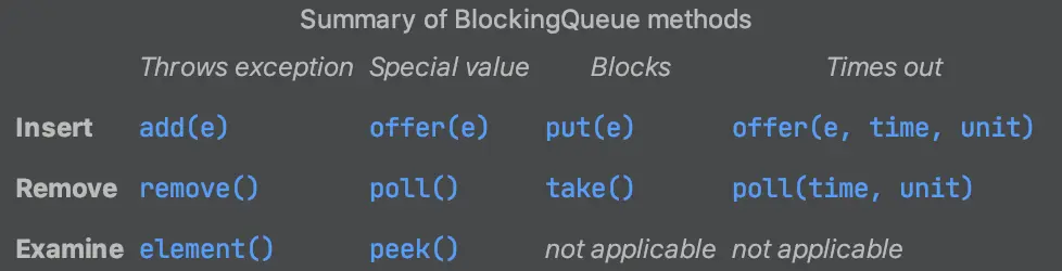 当队列是空时,消费者线程想从队列中读取元素会被阻塞;当队列是满时,生产者想往队列中插入元素也会被阻塞。