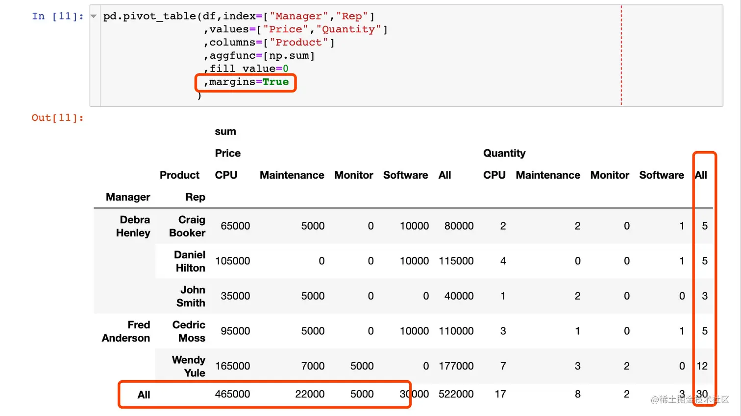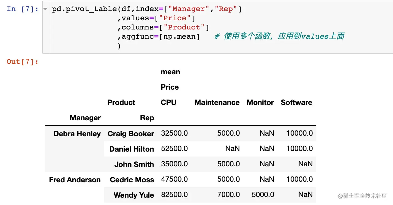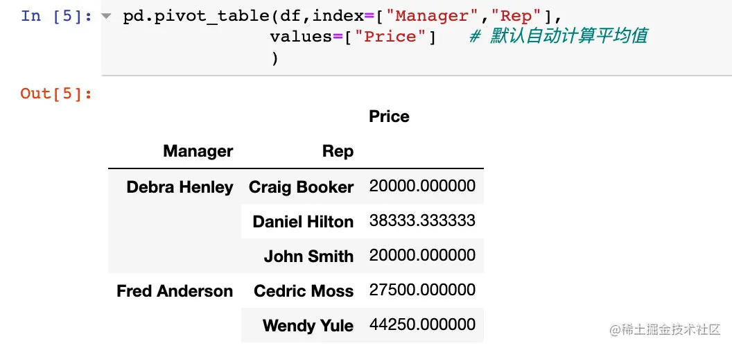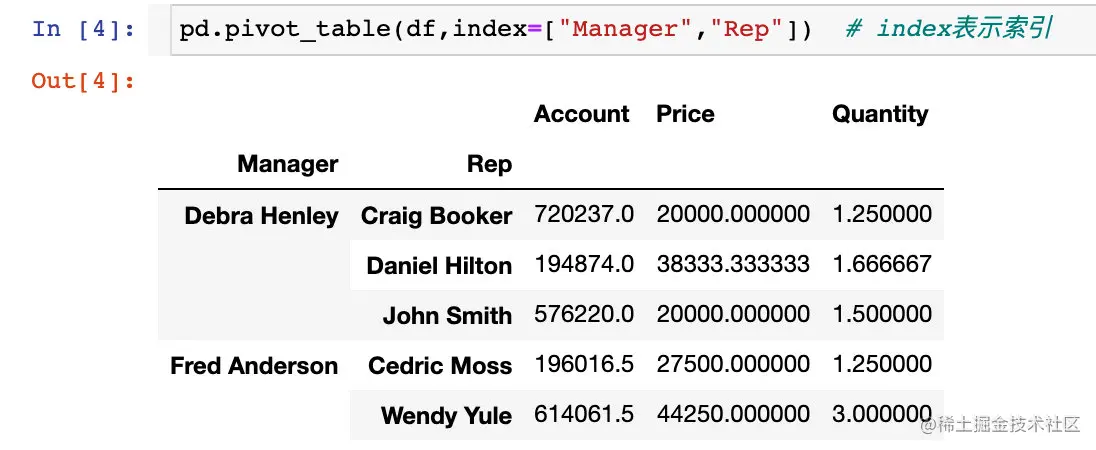 pd.pivot_table(df,index=["Manager","Rep"]) # index表示索引
