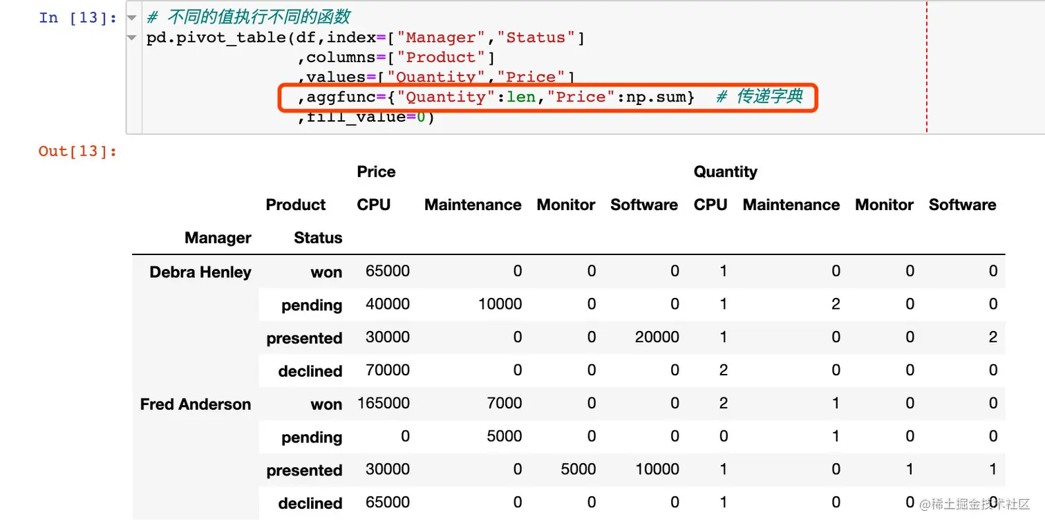 - 使用aggfunc参数,指定多个函数
