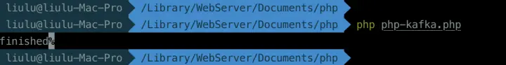 bin/kafka-console-consumer.sh --bootstrap-server localhost:9092 --topic test在另一个窗口执行 php producer.php,