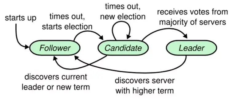 追随者只响应其他服务器的请求。如果追随者没有收到任何消息,它会成为一个候选人并且开始一次选举。收到大多数服务器投票的候选人会成为新的领导人。领导人在它们宕机之前会一直保持领导人的状态。