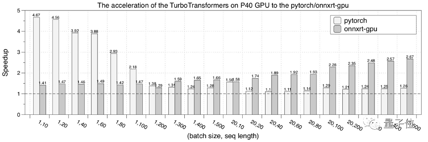 其次,是在GPU硬件平台上,测试了 TurboTransformers 的性能表现。