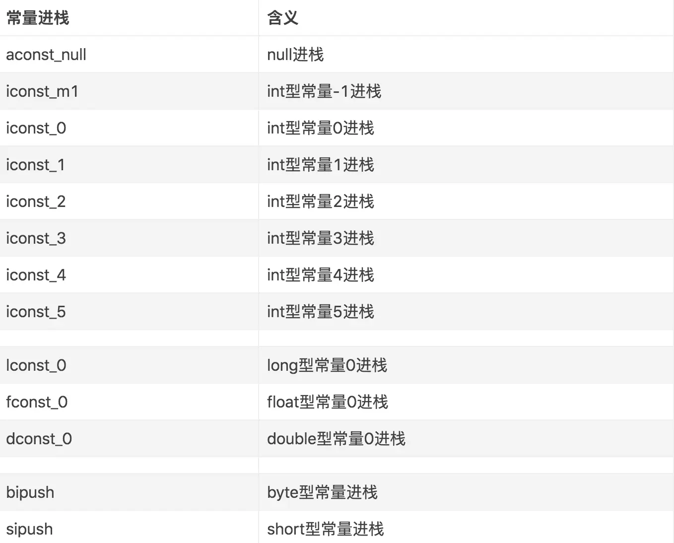 0x02 iconst_m1 将int型-1推送至栈顶