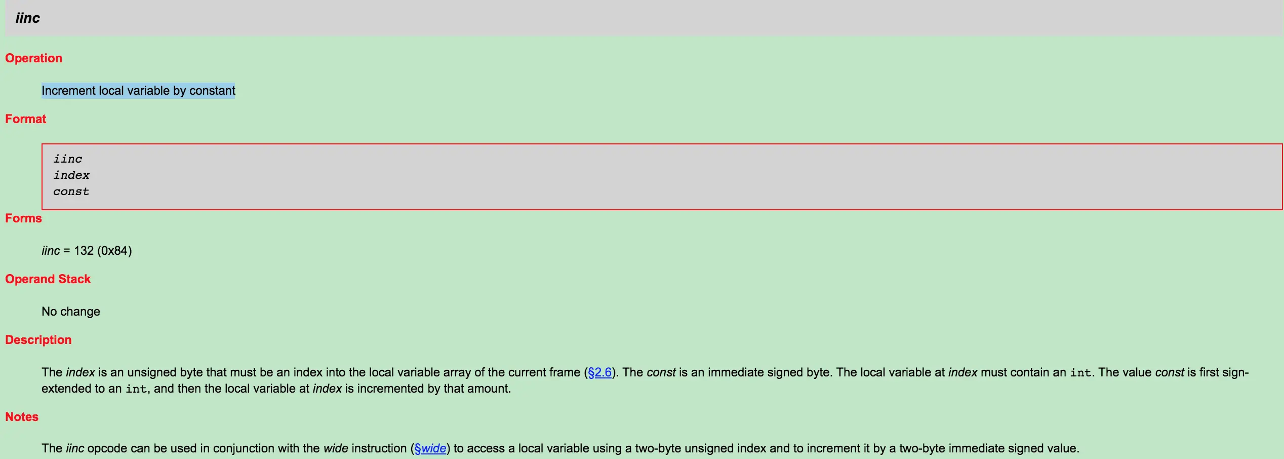 0x84 iinc 将指定int型变量增加指定值(i++, i--, i+=2)