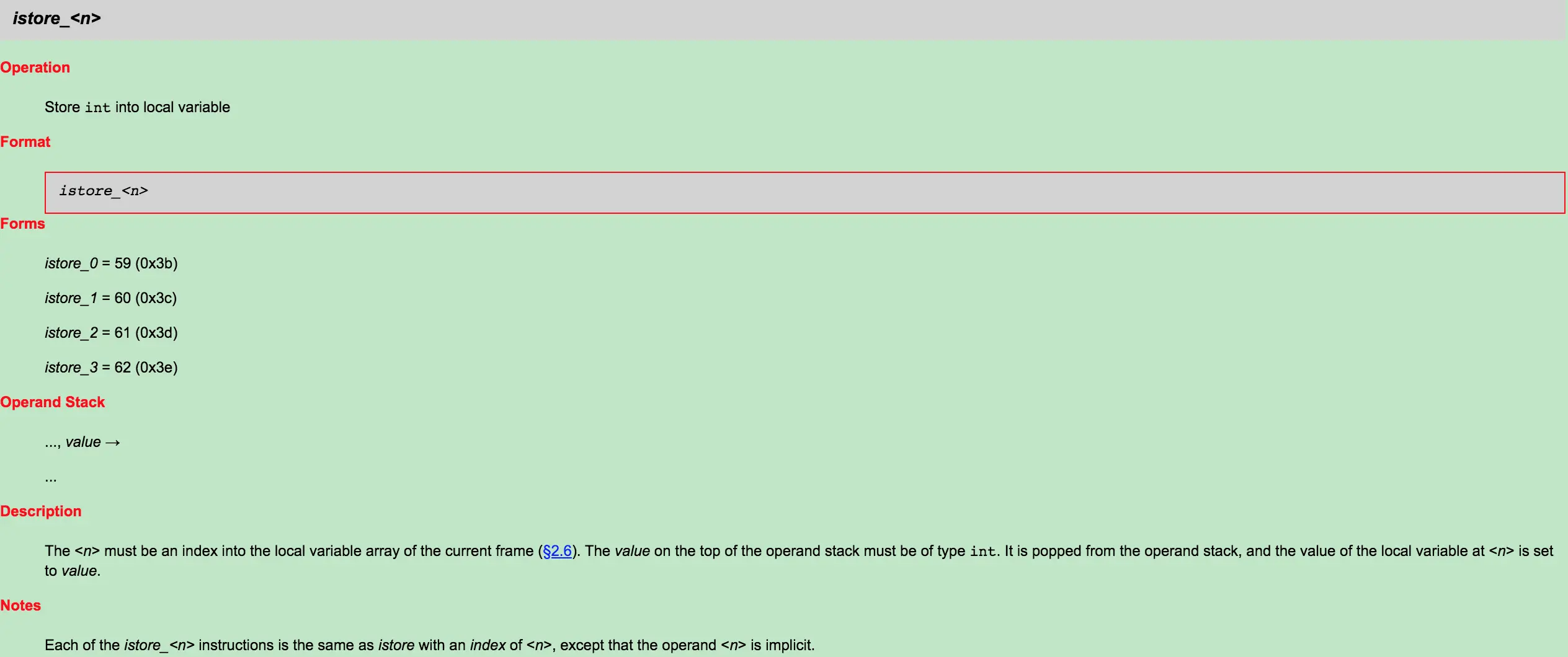 0x3b istore_0 将栈顶int型数值存入第一个本地变量