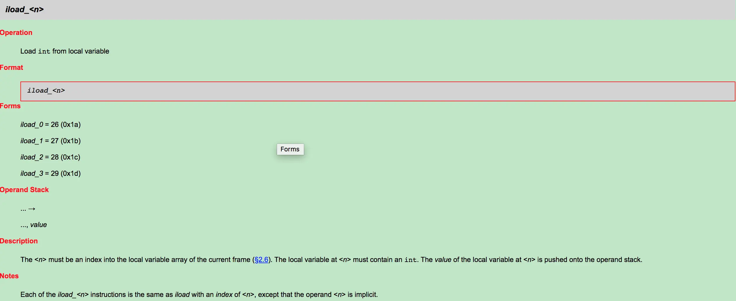 0x1a iload_0 将第一个int型本地变量推送至栈顶