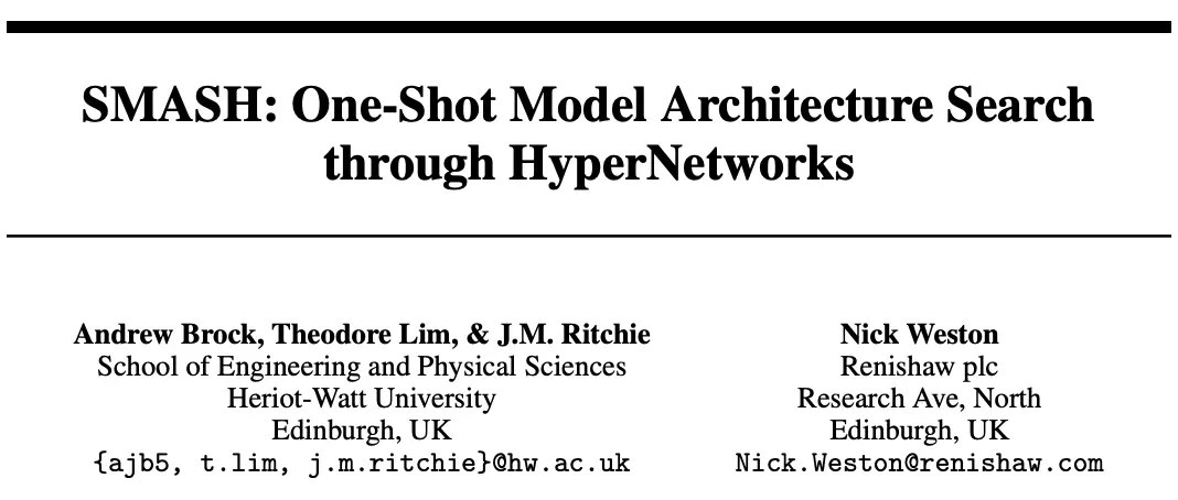 论文: SMASH: One-Shot Model Architecture Search through HyperNetworks