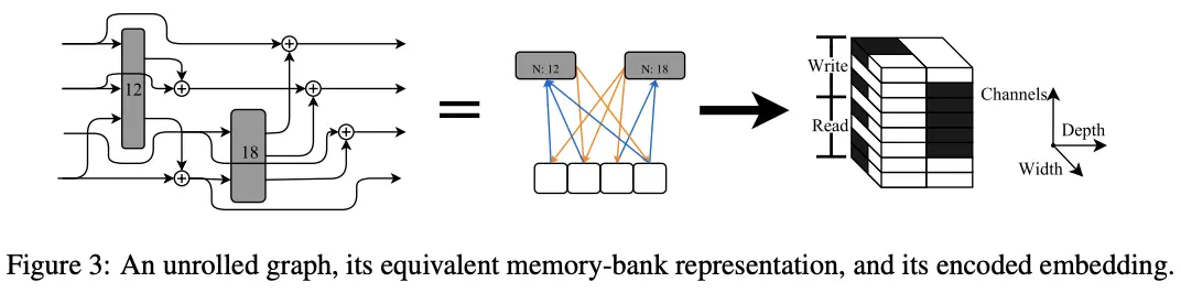 - 如何生成网络结构。论文采用基于存储体(memory bank)的前向网络,能够生成复杂且多分支的拓扑结构,并且能够使用二进制向量进行编码。