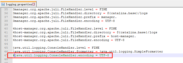 找到tomcat conf目录下的logging.properties,将红宽中注释掉,在启动tomcat发现中文乱码解决了,特此记录下这个问题。