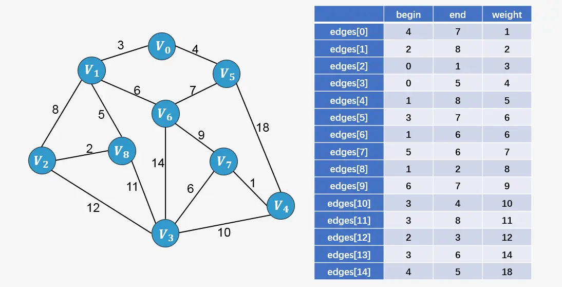 Edge edges[MAGEDGE]; // 定义边集数组