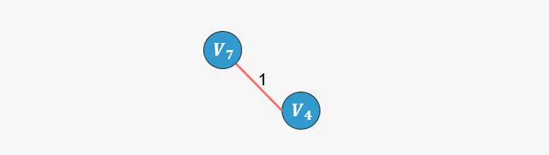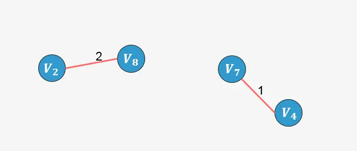 继续分析与生成树中已添加顶点相邻的顶点中权值最小的顶点,发现为 ,则添加到生成树中: