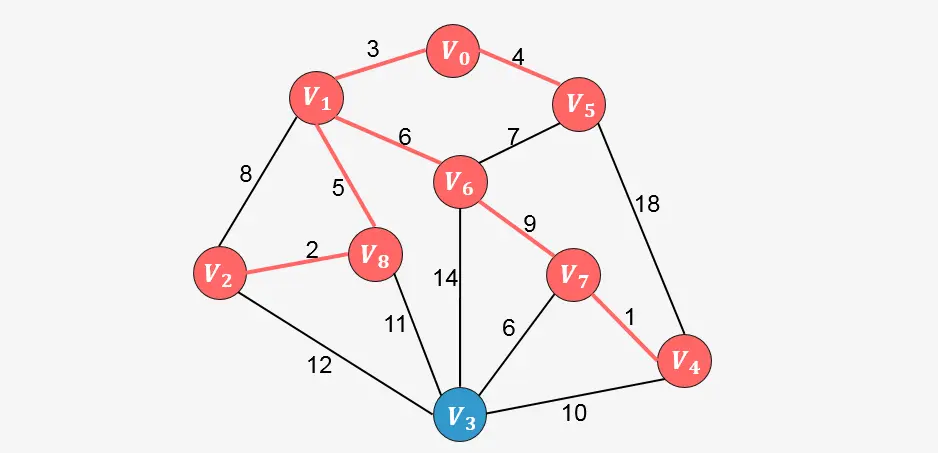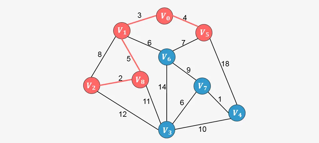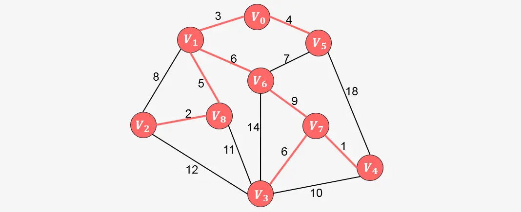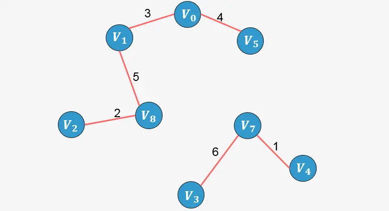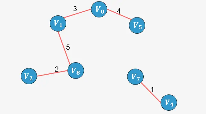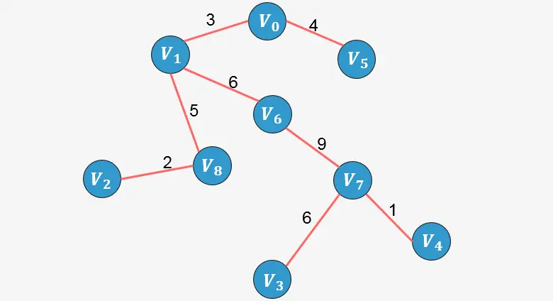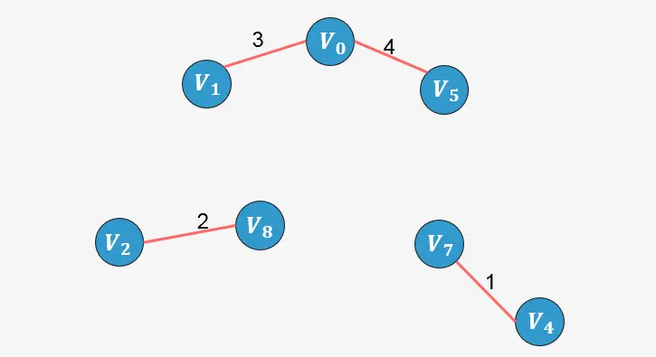 此时已经包含了图中顶点个数9减1条边,算法停止。