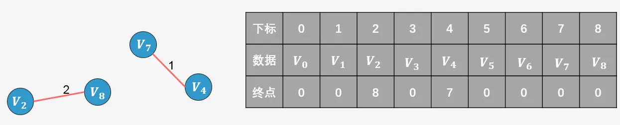 的 终点为8),则添加,并更新数组: