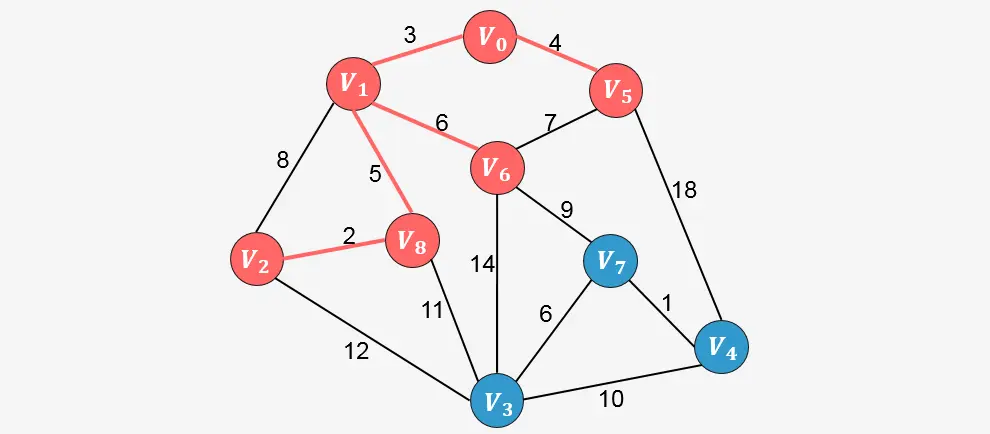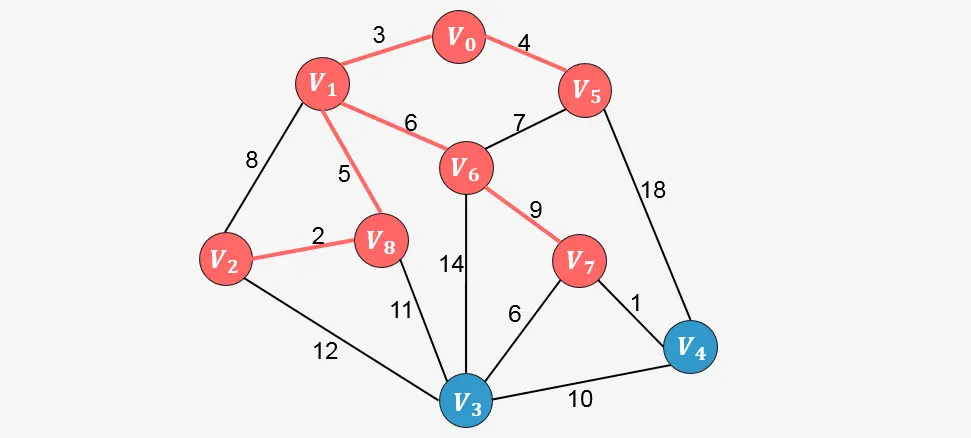 此时算法结束,我们找出了图中的最小生成树。