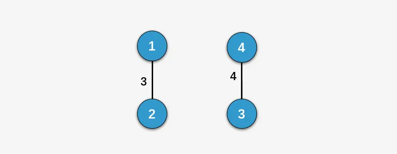 示例二中,输入N = 4, conections = [[1,2,3],[3,4,4]],返回-1,因为这个输入本身就是一个非联通图,所以怎么可能在图中找出一个从每个顶点到其他顶点的路径呢?不存在返回-1。