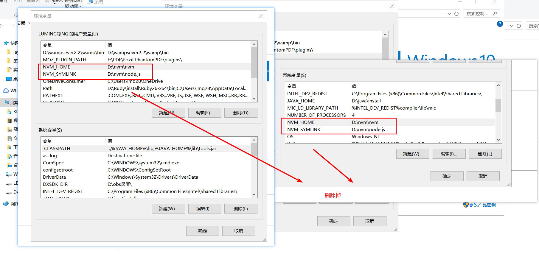 a. 找到系统变量 删除系统自带的nvm变量:NVM_HOME和NVM_SYMLINK