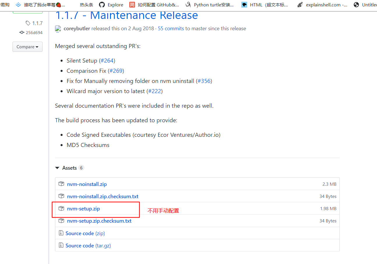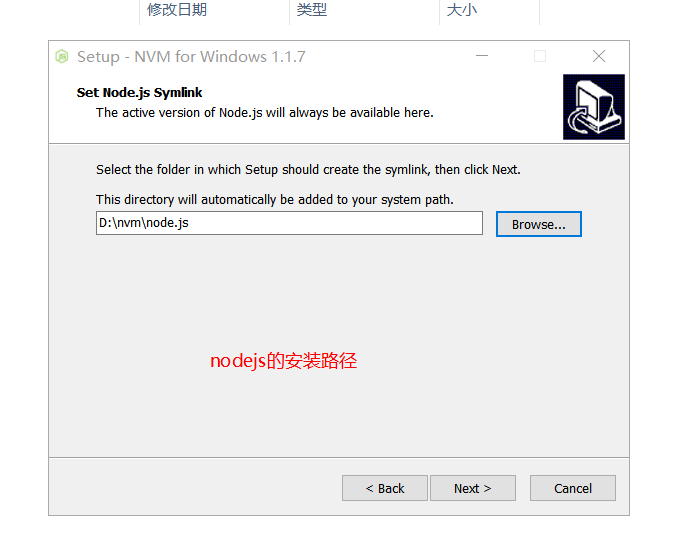 请注意: 在安装nvm for windows之前,你需要卸载任何现有版本的node.js。并且需要删除现有的nodejs安装目录(例如:"C:\Program Files\nodejs’)。因为,nvm生成的symlink(符号链接/超链接)不会覆盖现有的(甚至是空的)安装目录。
