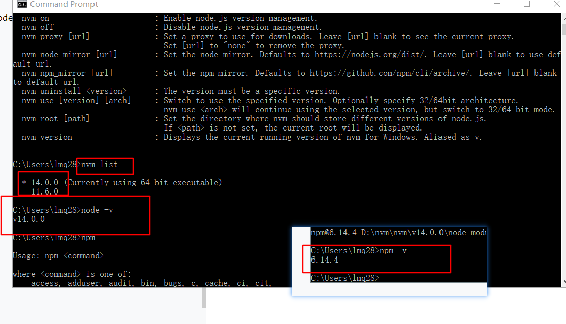 你还需要删除现有的npm安装位置(例如“C:\Users\lmq28\AppData\Roaming\npm”),以便正确使用nvm安装位置。