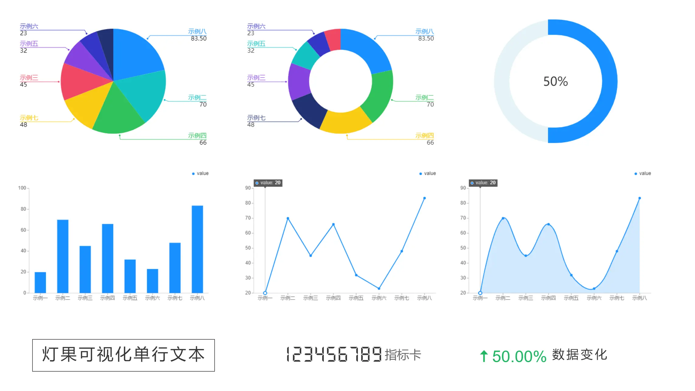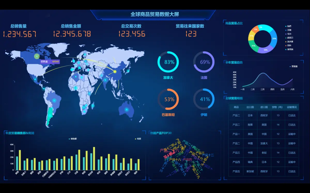 传统数据表格及ppt只能够以静态表格和图表来为管理层提供信息,而数据可视化使用户能够接收有关运营和业务条件的大量信息。数据可视化允许决策者查看多维数据集之间的连接,并通过使用柱状图、条形图、饼状图、百分比图、指标卡、数据变化,单行文本和其他丰富的图形更好的诠释商业数据。