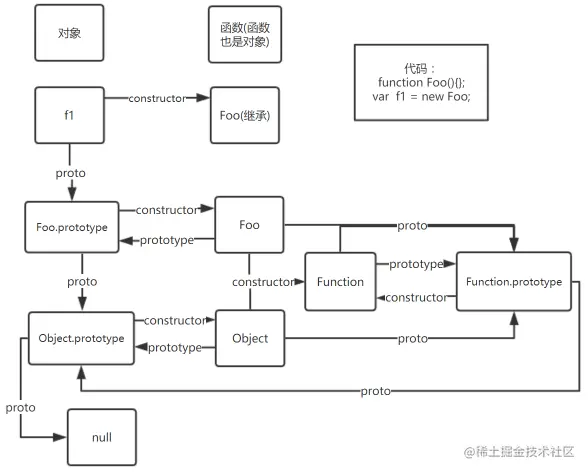 这个模型在 ES 的各个历史版本中并没有很大改变,但从 ES6 以来,JavaScript 提供了一系列内置函数,以便更为直接地访问操纵原型。
