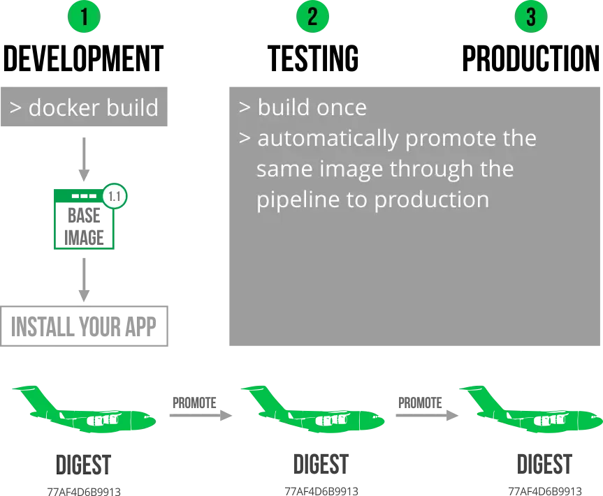构建一个Docker镜像,然后在测试到发布的流水线上进行升级,而不是重新构建,能够确保这个镜像带上航线的都能每次、准时、安全地飞翔。