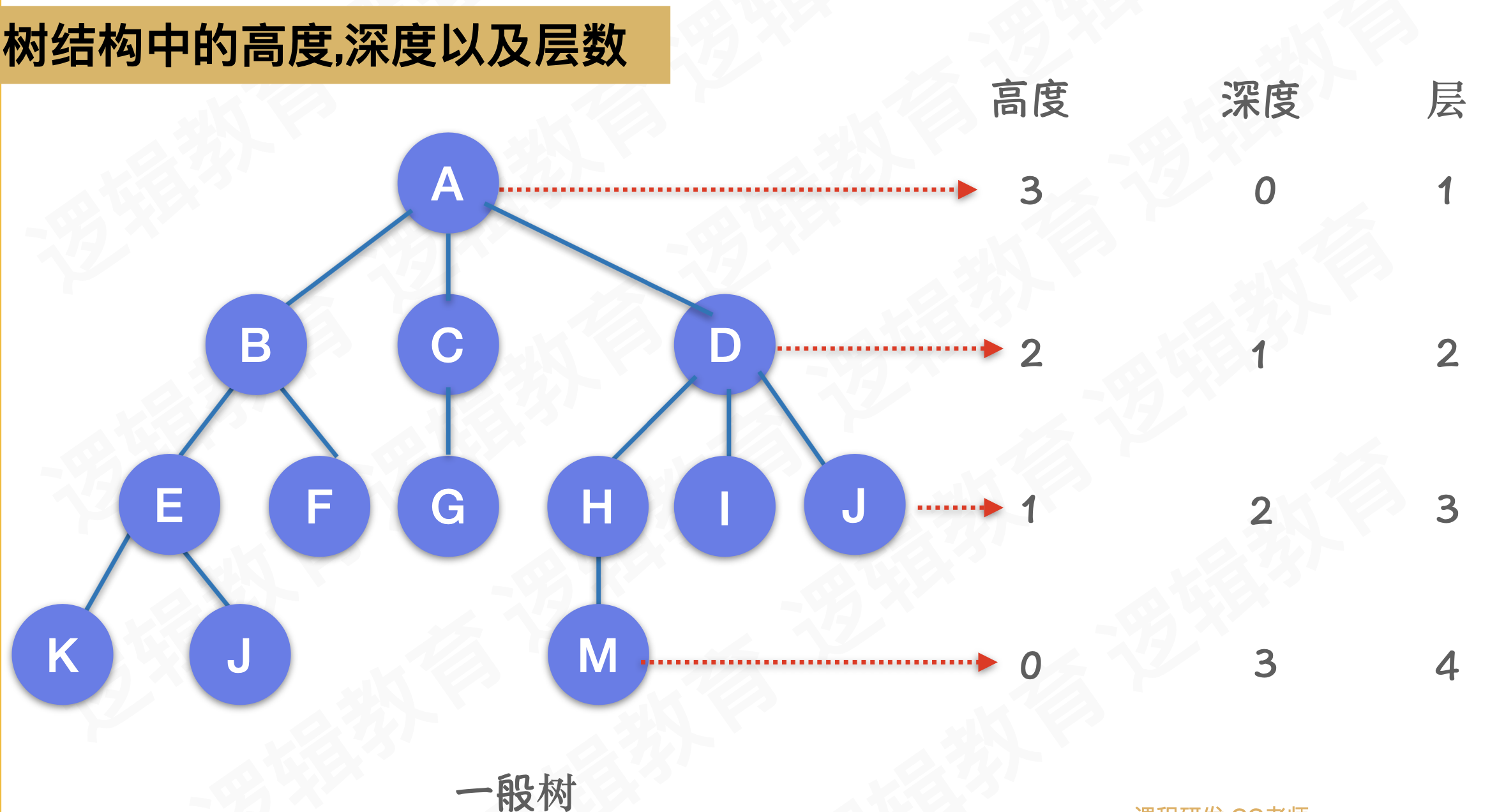 - 树的高度: 根节点的高度