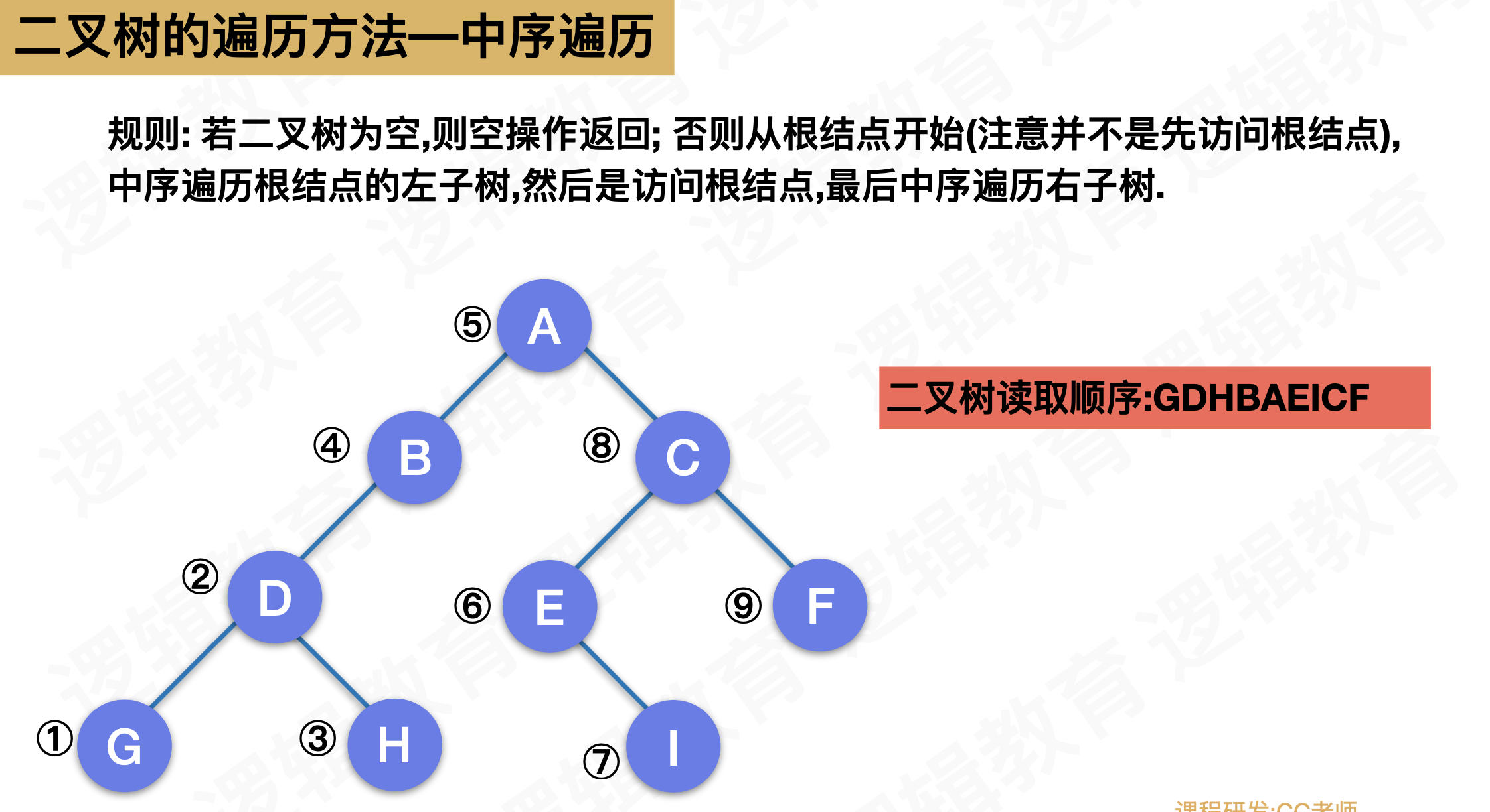 InOrderTraverse(T->rchild); /* 最后中序遍历右子树 */