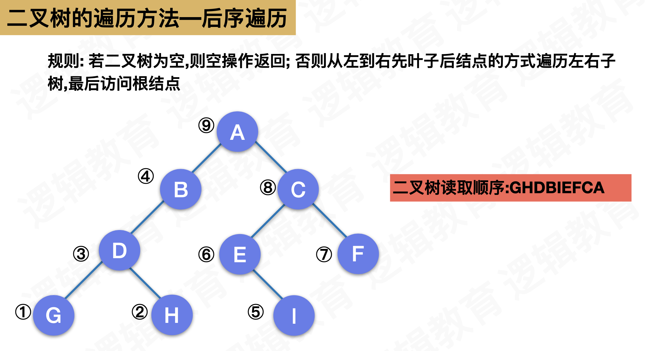 PostOrderTraverse(T->rchild); /* 再后序遍历右子树 */