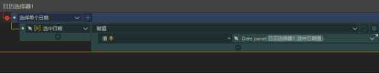 这里使用了拓展组件中的日期选择器,我们可以选择过去的任意一天,选取后会将该日期的时间戳赋值给“选中日期”。