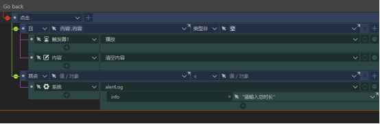 点击播放按钮“Go back”,会先判断一下输入框的内容是否为空,如果为空进行一个提示,若非空则触发器开始播放。