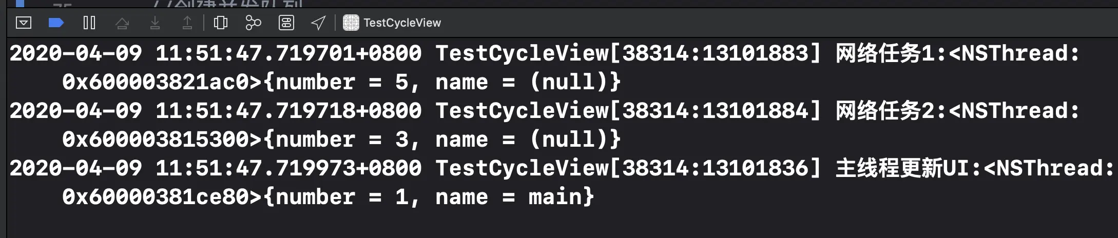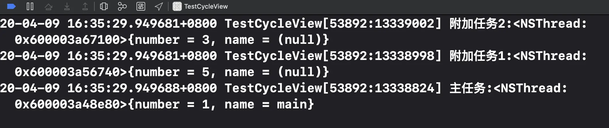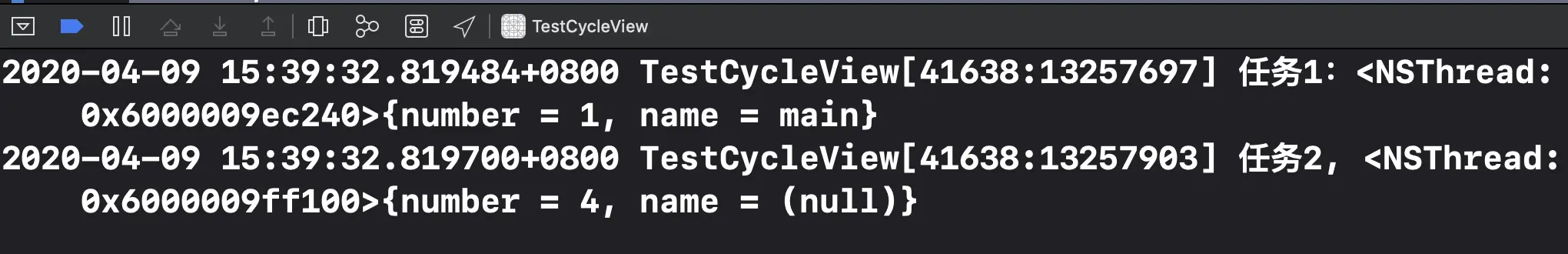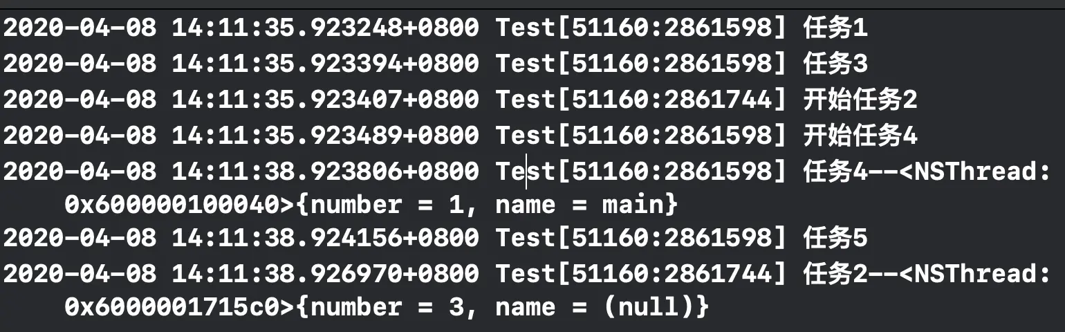 NSLog(@"thread2");