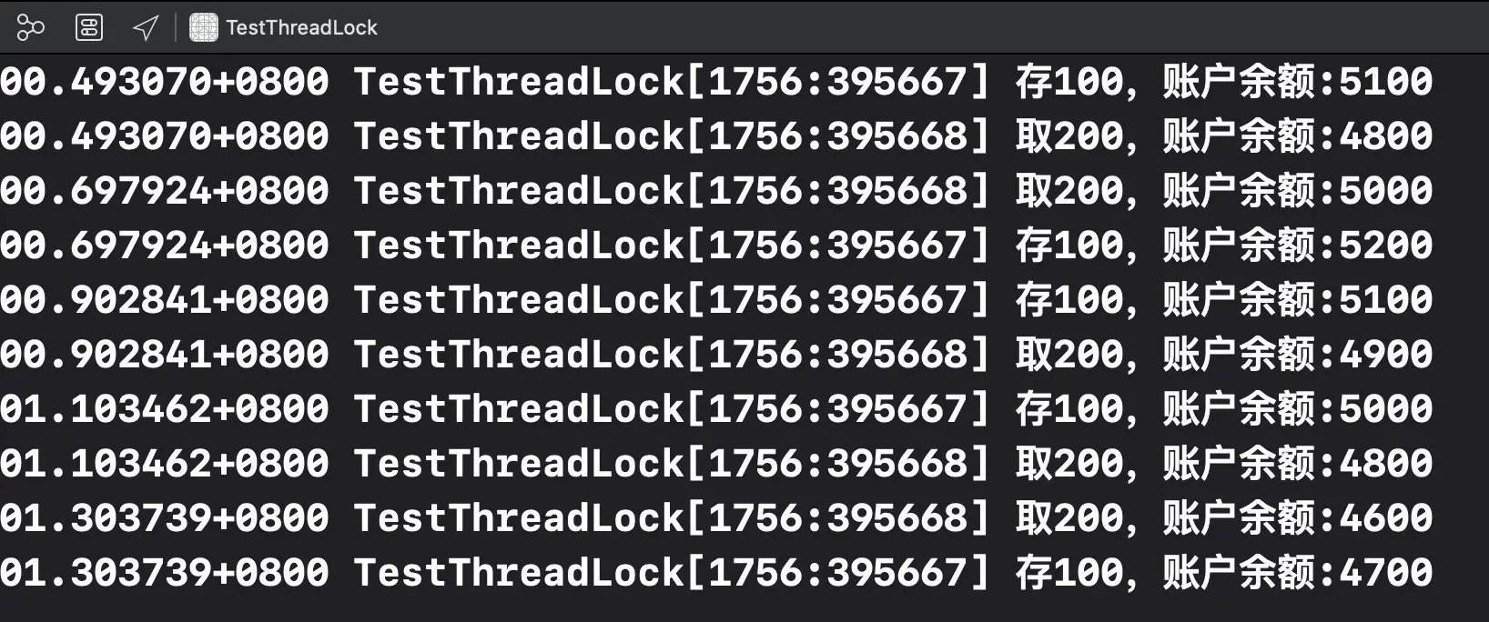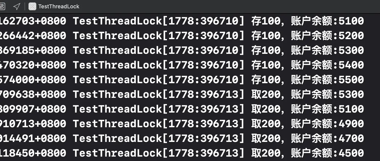 调用XLLockTest的test方法,打印如下: