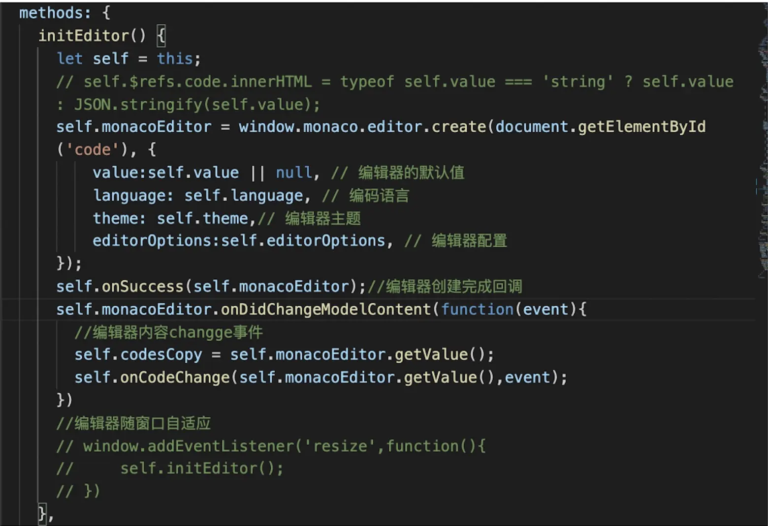 这样就可以正常的使用了~~CDN引入的话会将monaco editor的实例挂在window上,此处附上编辑器的使用代码: