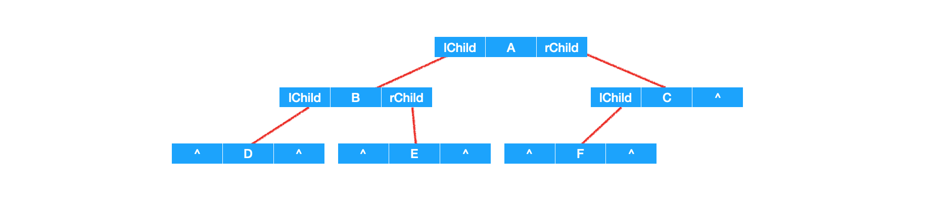 struct BiTNode *lChild, *rChild; // 左右孩子结点的指针