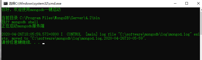 :: pause暂停一下,让你看清启动的过程,mongodb默认启用的端口是 27017 你可以在上面指定自己的端口