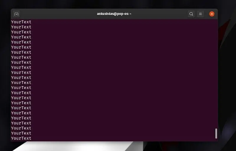 yes 命令帮助你在循环中自动响应直到终止命令。这个命令将会一直打印相同的内容。如果你想快速生成大量垃圾文本,那么此命令将像超级按钮一样工作。