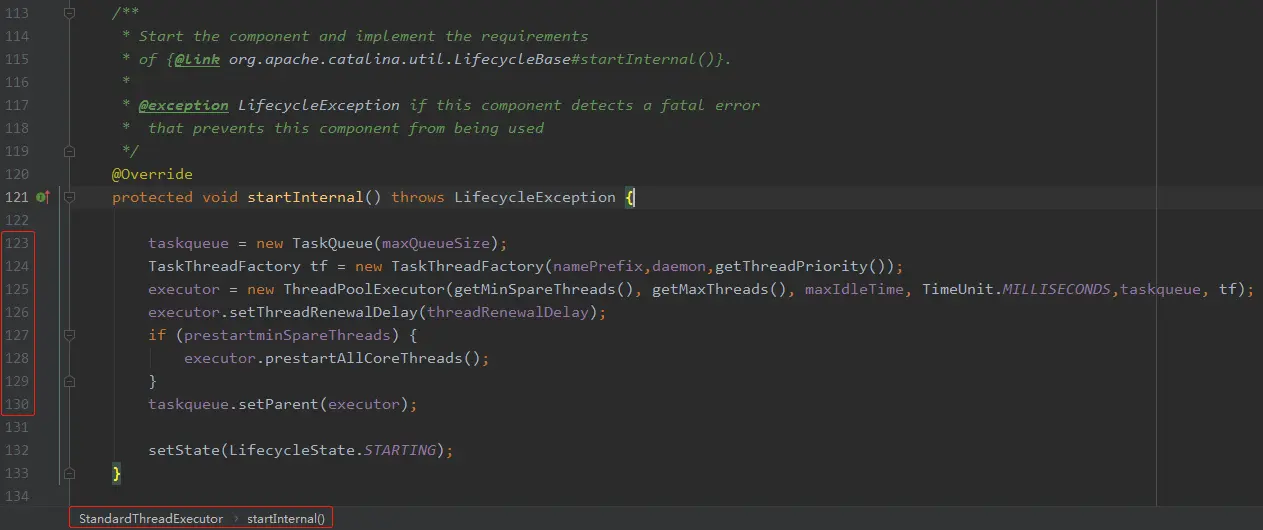 org.apache.catalina.core.StandardThreadExecutor#startInternal